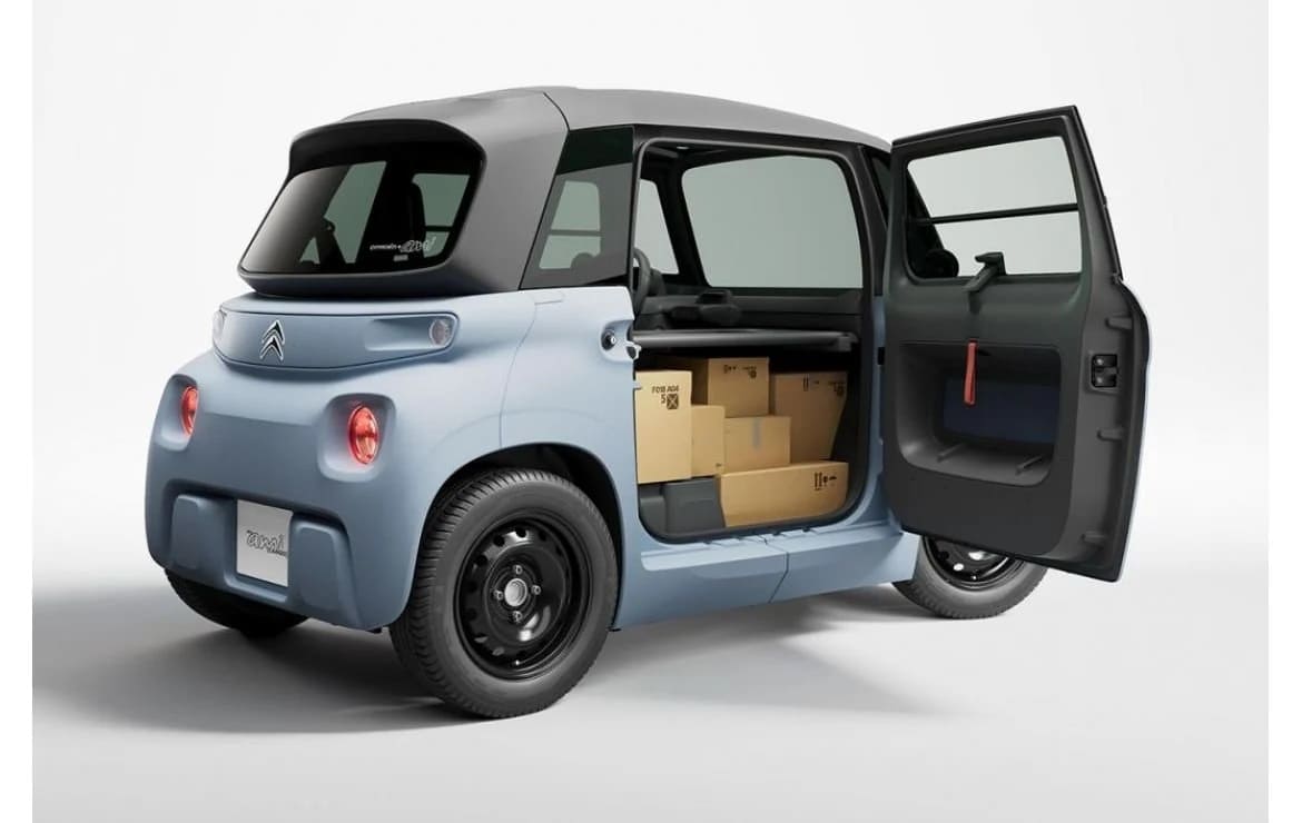 Las necesidades de profesionales y empresas son una gran prioridad para Citroën, que desarrolla continuamente soluciones como My Ami Cargo, un ingenioso vehículo de reparto eléctrico que incorpora todas las ventajas del Citroën Ami con un volumen útil total de 400 litros y una carga útil de 140 kg gracias a un espacio optimizado y modular en el sitio que habitualmente ocuparía el asiento del pasajero.