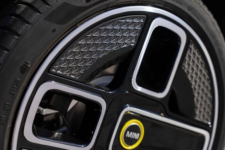 La combinación de una llanta de soporte ligero fabricada en aluminio 100% reciclado con incrustaciones de metal auténtico aerodinámicamente optimizadas, así como una tapa central de diseño innovador, ofrece un punto de venta único que diferencia claramente al modelo de la competencia. Fabricada íntegramente de aleación ligera reciclada, la llanta portante cumple por completo los requisitos estructurales y los elevados estándares de calidad del Grupo BMW, mientras que las incrustaciones optimizan las propiedades aerodinámicas del vehículo, aumentando así la autonomía del MINI Cooper SE Cabrio. En otras palabras, las innovadoras llantas de aleación contribuyen a reducir la huella de carbono del vehículo en múltiples aspectos, tanto en la producción como durante la conducción.